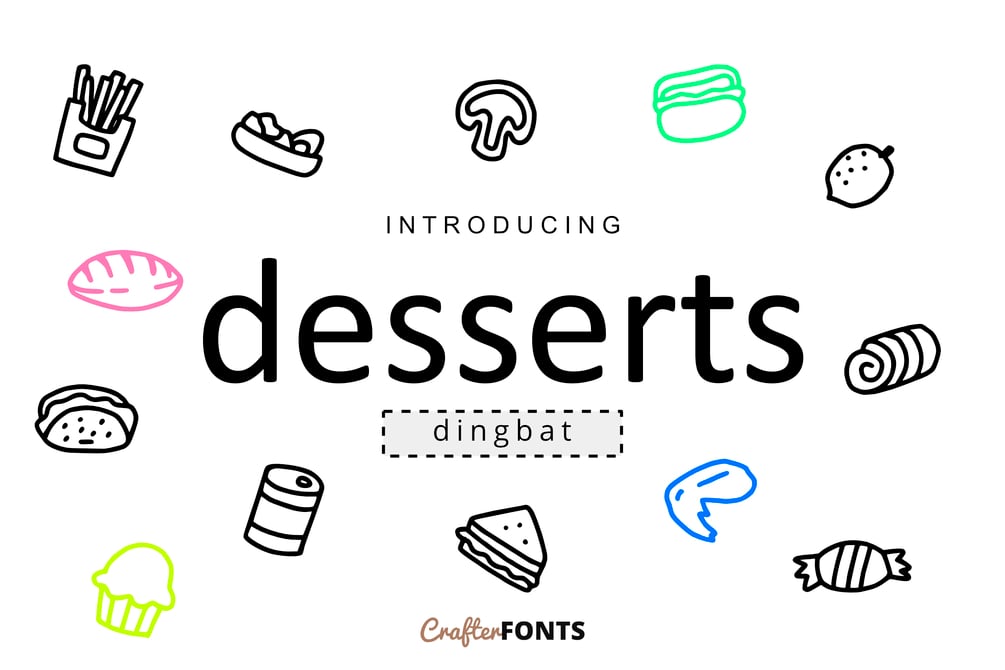- Desserts Regular .TTF .OTF and EOT files format.